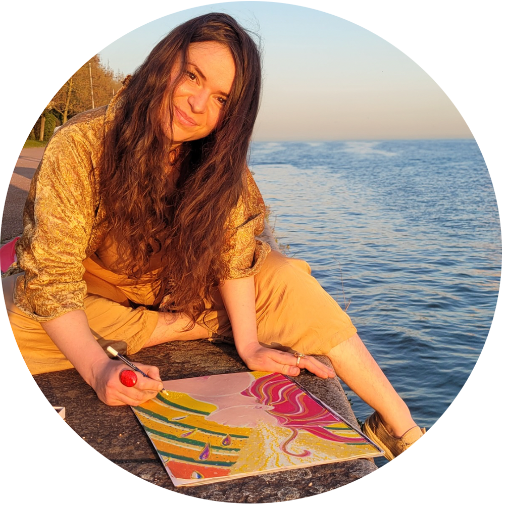 Mais aujourd'hui j'écris avec émotion que je suis peintresse énergétique. Aujourd'hui j'œuvre pour mon rêve et pour tous les vôtres. Pour voir ce monde joyeux et coloré qui existe déjà là dans mon cœur en grand dans la matière.
