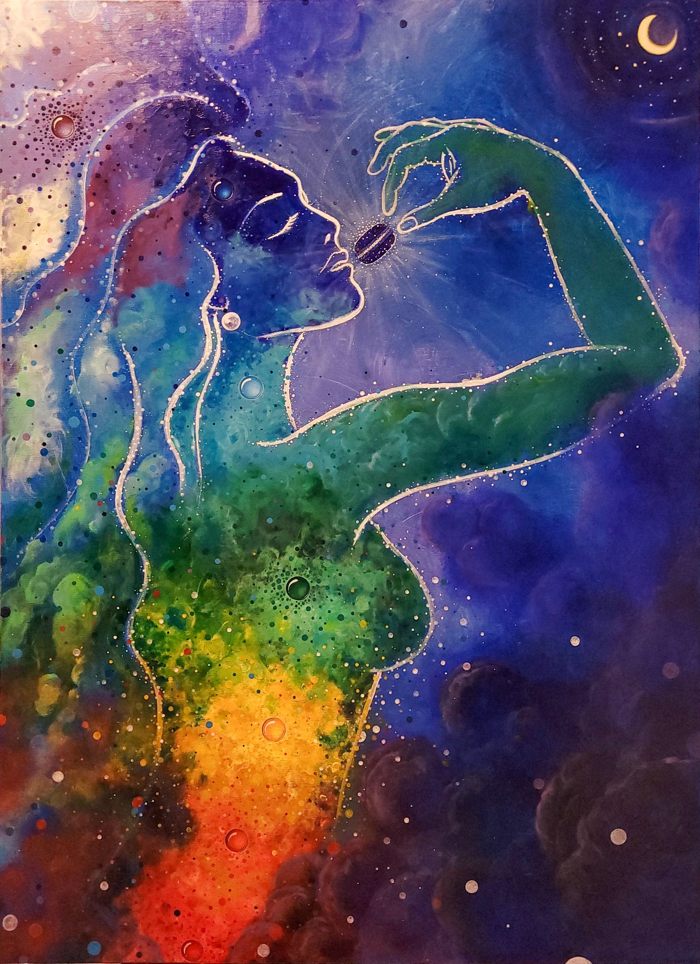 Depuis toute petite la spiritualité a une grande place dans ma vie, je la vis de façon très intime, et j'ai longtemps eu peur d'être jugée. C'est pourquoi pendant des années, j'ai peint dans mon coin pour manifester mes propres rêves.