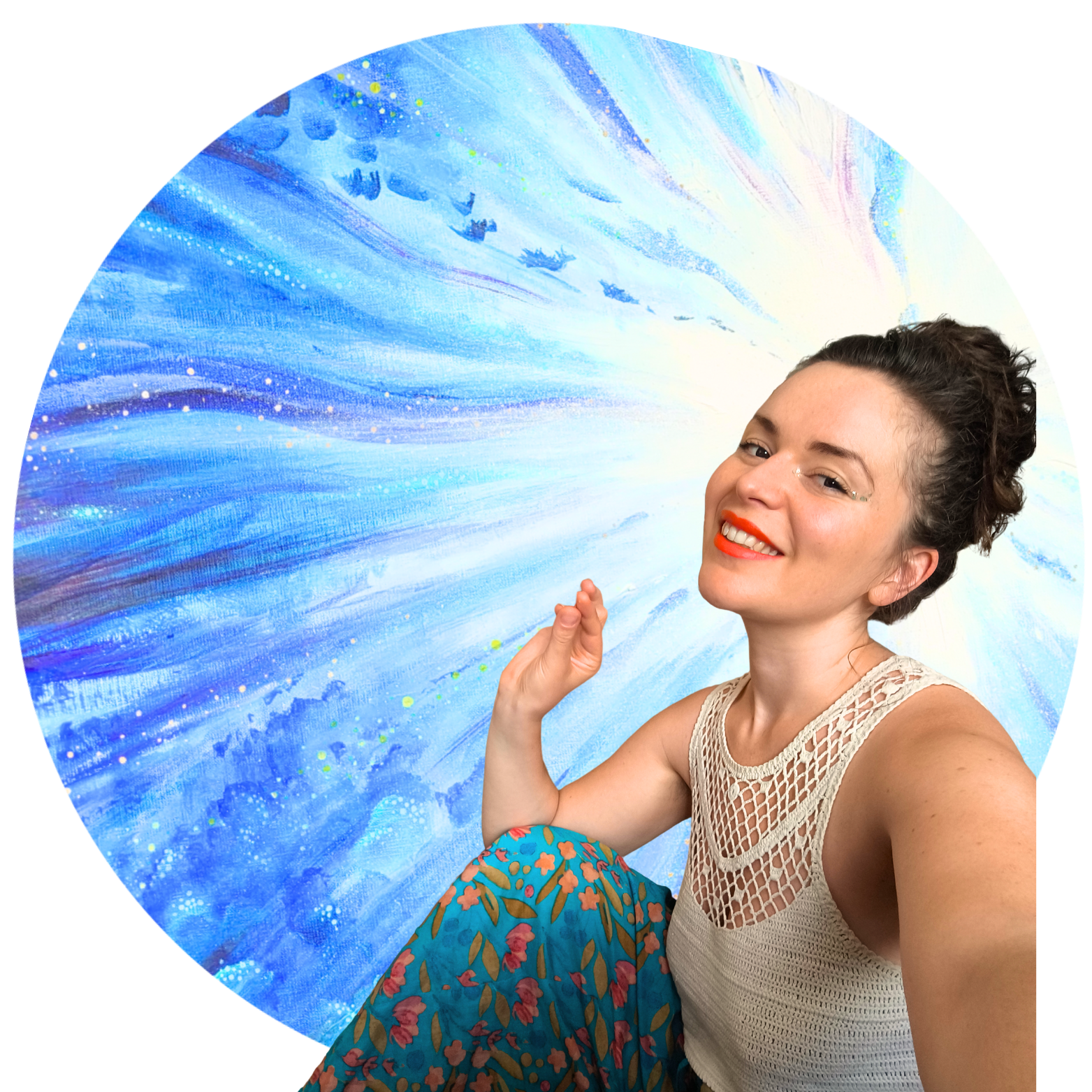Les couleurs, les formes et les vibrations émergent dans cet espace de reliance. La peinture devient alors un portail symbolique et énergétique, un support vivant qui entre en résonance avec ton propre champ.