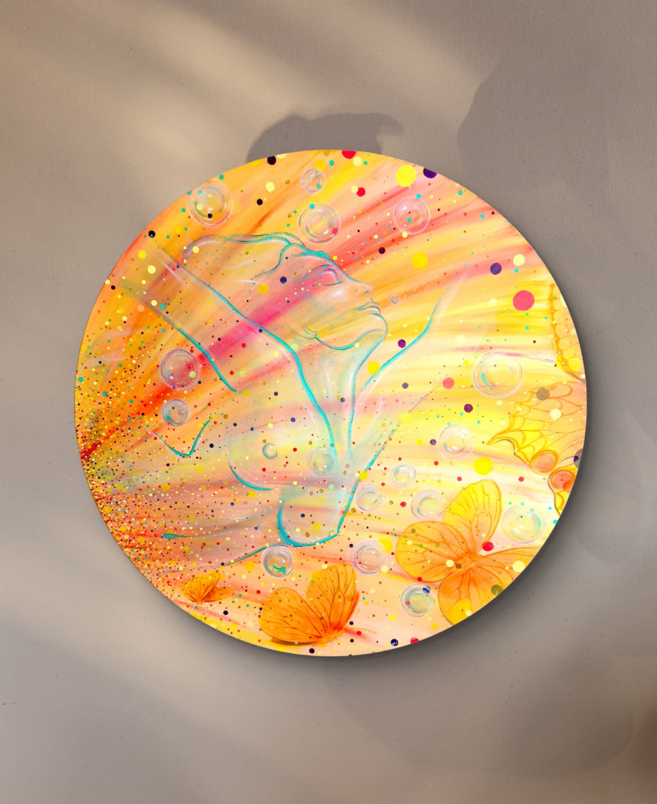 Ma peinture est un ancrage puissant de mes rêves. La période que je vis est intense et chalengeante et ce tableau m'aide à ancrer mon pourquoi. Avoir ce rayon de soleil, cet éclat de vie devant mon lit, je te pourrais jamais te dire autant merci 💛 Je retrouve l'essence de ma vision sur le tableau et ça me nourrit tellement ça me permet de la mettre dans la matière. C'est hyper précieux.